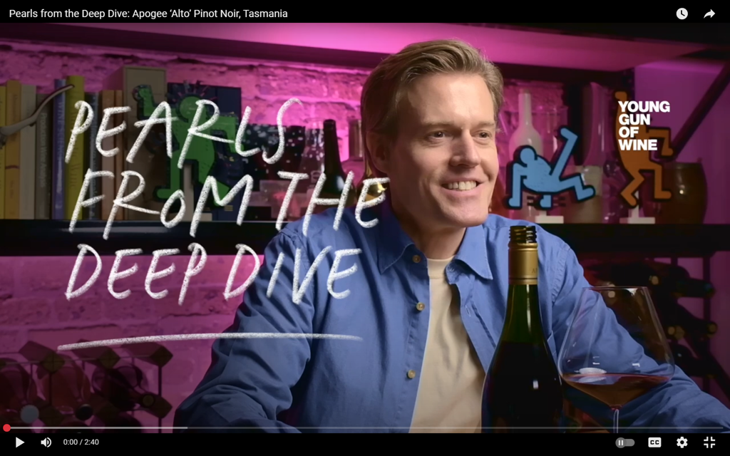 Rory Kent, Young Gun of Wine, liked our 2023 APOGEE Alto Pinot Noir. Watch the video to learn all about Andrew Pirie's vineyard secrets behind the quality